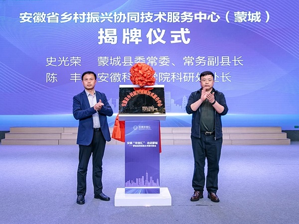 会议期间,举行了由我校与蒙城县人民政府共建的安徽省乡村振兴协同服务技术中心揭牌仪式,陈丰和史光荣共同为中心揭牌。该中心由我校联合合肥工业大学、皖西学院、中国科学院合肥物质科学研究院等高校科研院所及相关代表企业,与蒙城县人民政府联合建立,主要依托安徽省牛羊产业技术体系研发中心建设,以蒙城县牛羊特色产业发展为核心,辐射带动皖北地区乡村振兴牛羊产业特色发展;该中心主要围绕牛羊营养调控与健康养殖体系、机械与智能化体系和产品加工与安全体系等高效“种养加”三个方面开展关键技术集成与示范,积极探索牛羊绿色高效安全养殖新模式,发挥协同技术服务中心的引领、示范作用。