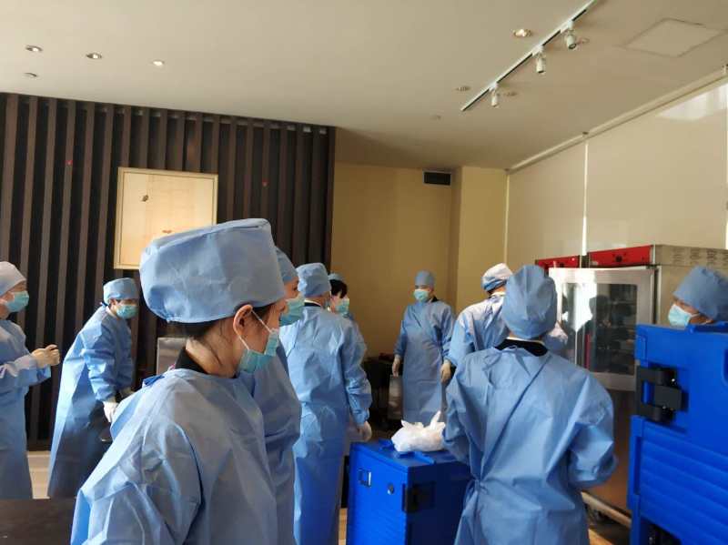 疫情发生之前,王欢和她的同学们在各自的岗位上认真工作实习;疫情严重时,他们自觉遵守国家、学校与酒店的相关规定在宿舍进行隔离与休假;疫情趋缓时,他们又陪同援鄂返沪医疗队度过了一段难忘的时光,受益匪浅。据王欢介绍,他们的工作主要是每天为援鄂返沪医护人员送餐四次:上午七点的早餐,九点半的水果,十一点半的午餐,下午五点半的晚餐。每次送餐都要穿厚重隔离服,戴头套、口罩、手套和脚套,推着手推车,把食物放进保温箱,然后送到医护人员的房间门口。就这样,四位实习学生与酒店工作人员一道和这群凯旋的“白衣天使”们朝夕相处了一个多月。叶俊和周杨说:“我们在为医疗队提供食物时严格做好了个人防护和消毒工作,没有一丝懈怠。而且为他们提供食物时我们很用心也很自豪。”周安全说:“有医生过生日时,我们会给他们做蛋糕、准备惊喜,在收到他们的感谢信时也会感到感动和骄傲。”