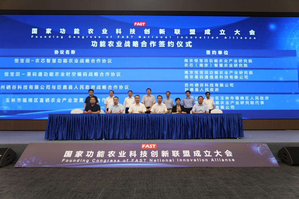 大会由国家功能农业科技创新联盟和南京国家农创园管理委员会主办,南京恒宝田功能农业产业研究院和南京农创园科创投资集团承办,中国科技大学苏州研究院功能农业重点实验室和玩球官方网站_玩球(中国)股份有限公司,协办。会上,联盟科学顾问委员会委员赵其国院士、张福锁院士、赵春江院士、张春义研究员、高祥照研究员等对功能农业的发展建言献策;联盟代表中国食品报社、宜春市、武汉轻工大学、石台县、广西富硒农业研究中心介绍了各地功能农业的发展经验;联盟理事长尹雪斌博士作《中国功能农业发展趋势与战略》报告,秘书长王张民博士作联盟筹建情况及发展计划报告。会上还进行了国家功能农业科技创新联盟聘任证书颁发、功能农业战略合作签约、《功能农业百问》新书发布等。