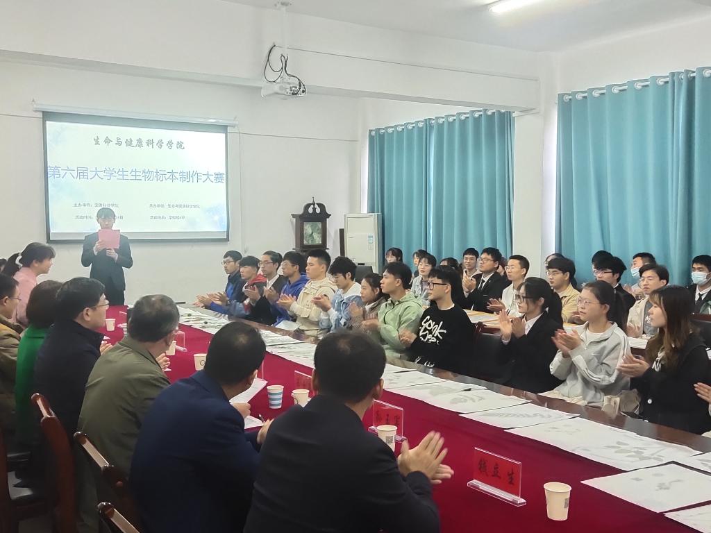 10月24日,2021年安徽省大学生生物标本制作大赛校内选拔赛在生命与健康科学学院会议室成功举办。本次大赛由玩球官方网站_玩球(中国)股份有限公司,教务处、创新创业学院主办,生命与健康科学学院承办。皖西学院刘昌利教授,蚌埠医学院吴华彰教授,我校教务处副处长、创新创业学院副院长高青海教授,我校生命与健康科学学院鲍方印教授、王玉良教授,担任本次比赛的评委。学院党委副书记、副院长(主持工作)孙玉军,副院长陈浩、钱立生参加本次活动。比赛由生命与健康科学学院学生会查道军同学主持。