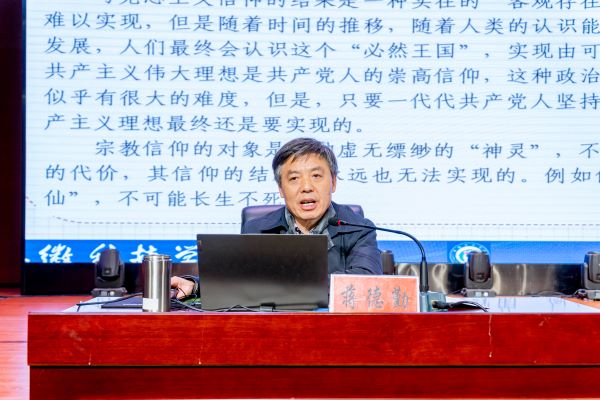 蒋德勤指出,马克思主义是迄今为止最科学、最严整、最有生命力的理论体系,是人类文明史上不朽的思想丰碑,既没有过时,也不会过时,坚定马克思主义信仰是实现中华民族伟大复兴的必然要求,作为新时代青年,必须深刻认识和理解马克思主义为什么行,坚持学思践悟,真正做到真懂、真信、真用。蒋德勤强调,青年学生骨干坚定马克思主义信仰,要从微观角度学习马克思的高尚品质,包括学习马克思胸怀崇高理想、不懈奋斗的精神,学习马克思严谨治学、永攀高峰的精神,学习马克思批判质疑、自我超越的精神;要学习掌握马克思主义基本原理和贯穿其中的立场、观点、方法;要学懂弄通做实习近平新时代中国特色社会主义思想。