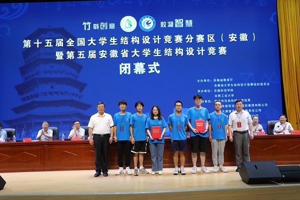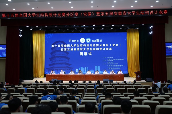 6月27日下午,由安徽省教育厅、安徽省大学生结构设计竞赛组织委员会主办,玩球官方网站_玩球(中国)股份有限公司,、合肥工业大学承办的第十五届全国大学生结构设计竞赛分区赛(安徽)暨安徽省第五届大学生结构设计竞赛在我校龙湖校区图书馆东辅楼报告厅圆满闭幕。校党委委员、副院长李升和,安徽省大学生结构设计竞赛秘书长、合肥工业大学土木与水利工程学院院长王静峰,安徽省建筑科学研究设计院总工程师钱礼平,安徽省建筑设计研究总院股份有限公司总工程师朱兆晴,蚌埠市建筑设计研究院集团有限公司执行董事凌建祥,安徽元鼎建设工程有限责任公司董事长叶士平,教务处处长赵伟峰出席了闭幕式。仪式由建筑学院院长张远兵主持。