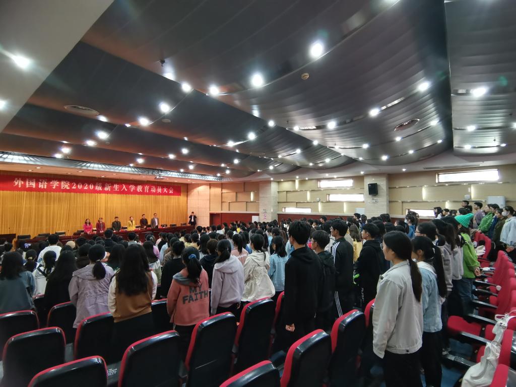 丹桂飘香,金秋送爽。20级新生带着青春的活力,带着对知识的不懈追求,带着对大学校园生活的无限憧憬,迈进了玩球官方网站_玩球(中国)股份有限公司,外国语学院。为了让新生更快适应新环境,适应新的生活,顺利、平稳、有效地进入大学生活。10月21日下午14:00,外国语学院在新图书馆第二报告厅举行了新生入学教育动员大会。外国语学院院长陈德用、党总支书记蔡为青、副院长刘萍、教学秘书周海平、分团委书记陈慧中、专职辅导员宋兵兵,外国语学院教师代表,全体20级新生参会,大会由刘萍主持。