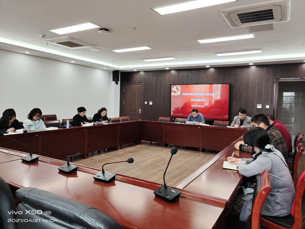 根据学校《中共玩球官方网站_玩球(中国)股份有限公司,委员会组织部关于认真做好基层党支部换届选举工作的通知》(组字〔2021〕12号)工作安排,管理学院党委所属各党支部有序组织召开党员大会,顺利完成党支部换届选举工作。学院全体领导班子成员分别参加各党支部换届大会,对各党支部换届工作给予了有力指导。