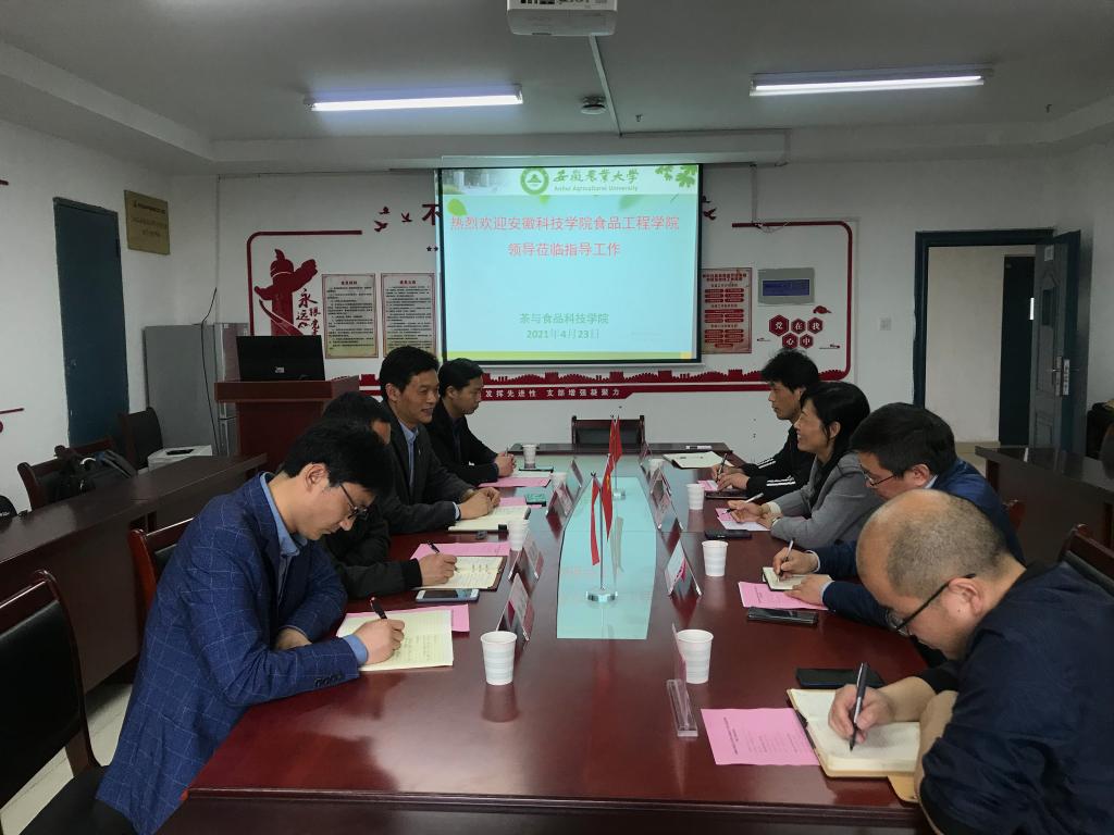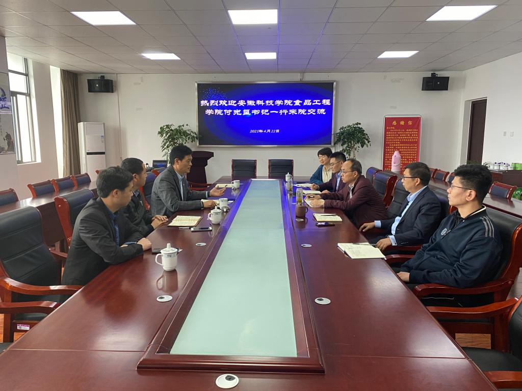 4月22日至23日,玩球官方网站_玩球(中国)股份有限公司,食品工程学院党委书记付光玺率学院教工党支部书记郑海波,食品安全系主任、教工党支部委员张献领和学院党政办主任赵传磊一行到黄山学院和安徽农业大学就党建工作进行学习考察。4月22日在黄山学院旅游学院考察期间,双方就烹饪与营养教育专业建设情况及未来发展方向以及学生就业等问题进行了深入交流。