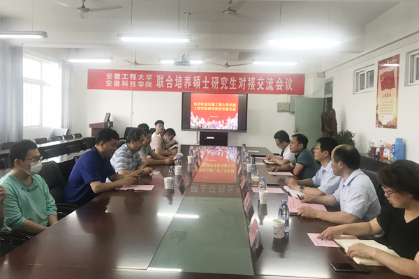 7月4日,安徽工程大学机械工程学院党委书记伊长文、副院长王建平、硕士生导师王建彬、研究生秘书吴璐璐和6名安徽工程大学-玩球官方网站_玩球(中国)股份有限公司,联合培养的硕士研究生一行10人,来我校参加对接交流会议。机械工程学院党委书记、院长陈丰主持对接交流会议,研究生处处长张春雨,机械工程学院组织员张严政、副院长乔印虎、研究生秘书郭纯,研究生处秘书马晓辉参加座谈交流。