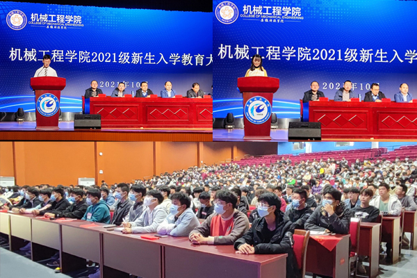 会上,张程宣讲解读了《机械工程学院关于开展2021级新生入学教育的安排意见》,并就重点就加强学院学风建设、维护课堂良好秩序、杜绝违规使用手机等问题,向全体新生提出了具体要求;张华就学院发展历程、学科建设、专业认证、特色专业、重点专业、办学师资、教学成果等方面向学生作了详细介绍。教师代表——汽车工程系副主任、教工党支部书记张卫博士,老生代表——学生会主席团成员、国家奖学金获得者、中共预备党员、车辆工程191班李申昊,新生代表——农业智能装备工程211班程藜在会上先后发言。