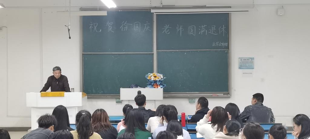 一踏进教室,迎面就响起了经久不息的掌声,法学专业2020级的学生早已等在这里。虽然相处时间不长,只有一载光阴,但他们已真心实意地爱上了这个头发花白的老人家——历届法学学生口耳相传的“徐大爷”。