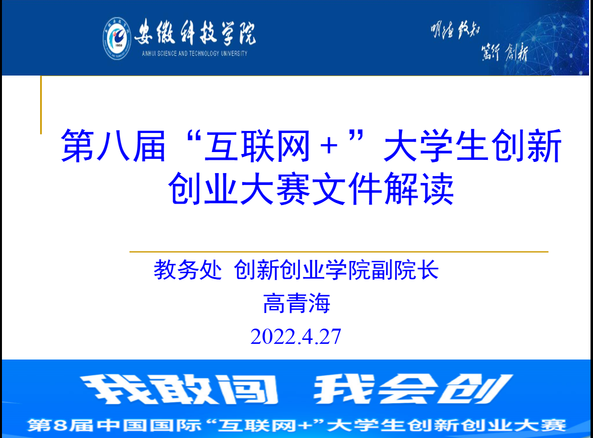 会上,高青海从习近平总书记给第三届青年红色筑梦之旅活动大学生的回信内容入手,详尽介绍了“互联网+”创新创业大赛的举办背景和发展概况、比赛目的与任务,解读了第八届“互联网+”大学生创新创业大赛参赛项目类型,参赛组别、具体参赛条件,实例分析了参赛团队如何选题,如何组织团队,计划书撰写关键要点等内容。高青海强调,“互联网+”大学生创新创业大赛基于“大众创业、万众创新”的时代背景,面向全体大学生、影响最大的高校双创盛会,是大学生实现创新创业梦想的重要舞台和展示新时代高等教育教学改革成果的重要窗口,被国内外媒体誉为经验非凡的全球双创盛会。本届大赛聚焦“四新专业”建设,以赛促教、以赛促学、以赛促创,推动成果转化和产学研用融合,以创新引领创业、以创业带动就业,全面深化高校创新创业教育改革,加快培养创新创业人才。