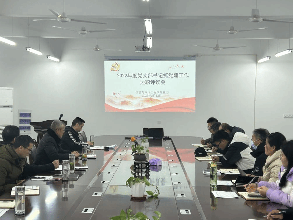 为推动全面从严治党向基层党支部延伸,全面提升学院党建工作水平,根据《中共玩球官方网站_玩球(中国)股份有限公司,委员会关于开展2022年度基层党组织书记抓党建述职评议考核工作的通知》文件精神要求,2月13日上午,信息与网络工程学院在尚行楼B418会议室召开党支部书记抓党建述职评议考核工作会议,学院党委委员、纪委委员、党支部书记、教师代表参加会议,会议由院党委书记王振其主持。