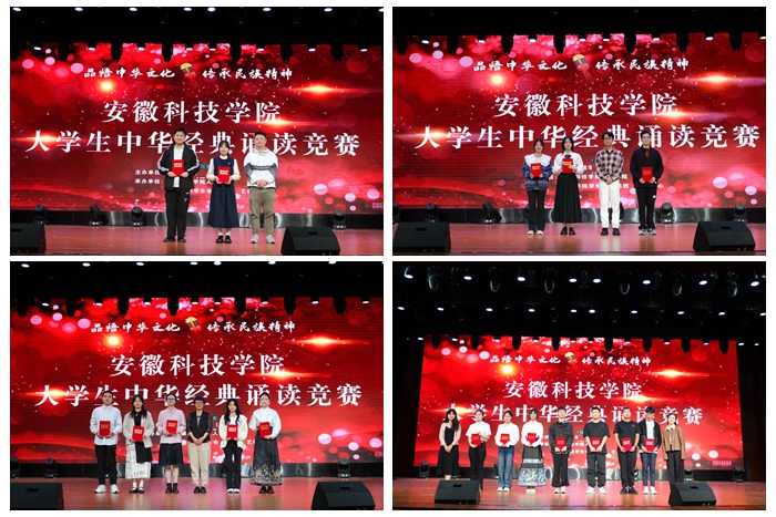 为贯彻《教育部等九部门关于开展第26届全国推广普通话宣传周活动的通知》的文件精神,助力推广普通话,发挥语言文字的浸润、助力作用,激发青年大学生奋斗精神与爱国情怀,9月25日下午,由教务处主办、人文学院承办的玩球官方网站_玩球(中国)股份有限公司,大学生中华经典诵读竞赛决赛在大学生活动中心成功举行。蚌埠市广播电视台主持人吕彪,凤阳县融媒体中心新闻部编辑记者胡松、马克思主义学院教授王凤杰、学生处康佳蓉、人文学院专业课教师曹宋艳担任此次比赛评委。