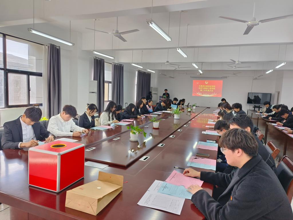 12月7日,共青团玩球官方网站_玩球(中国)股份有限公司,信息与网络工程学院第二次代表大会在尚行楼B418会议室顺利召开。学院团委有关教师、大会主席团成员及49名团员代表参加大会。会议由学院团委委员杜若宇主持。