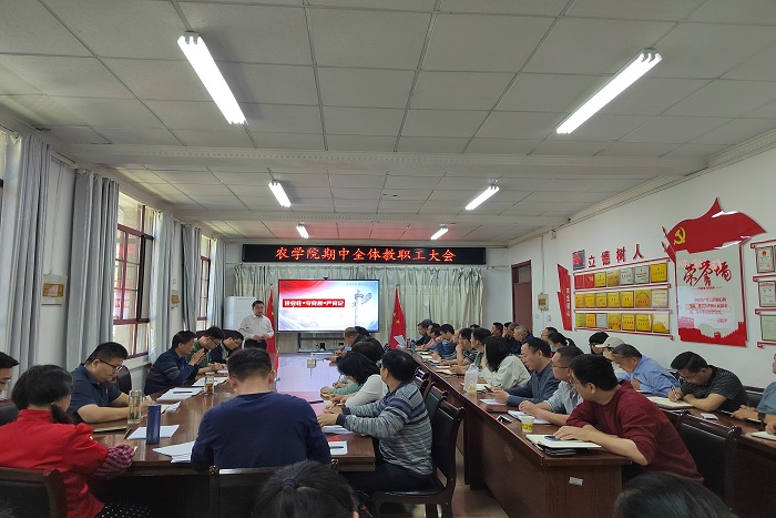 5月15日下午,农学院在学院会议室召开期中全体教职工大会。学院党政领导和全体教职工参加会议。会议由农学院党委副书记、院长崔广荣主持。