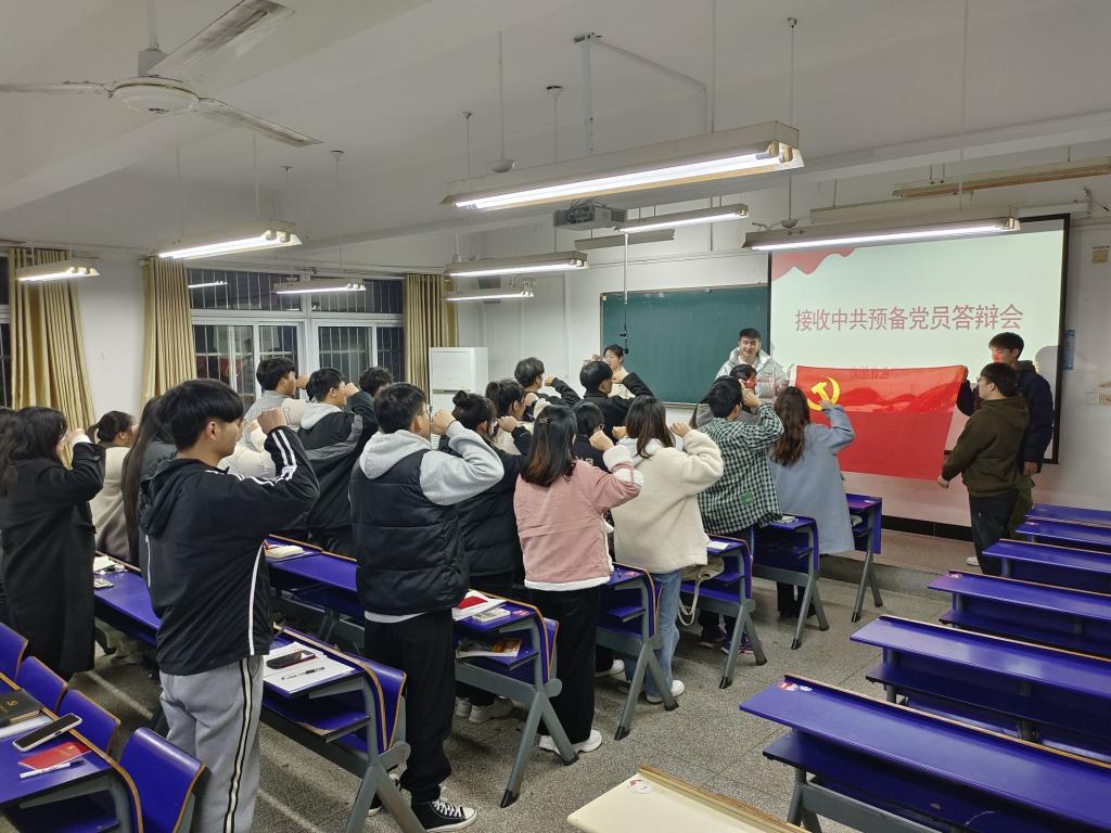 会上,薛晶晶介绍了本次会议议题和流程,带领与会同志学习了《中共玩球官方网站_玩球(中国)股份有限公司,委员会发展党员工作实施细则(修订)》文件精神。随后,许浩博等7名发展对象依次宣读《入党志愿书》,向党支部汇报了自己成为入党积极分子以来的思想、学习、生活和工作上的情况,阐述了自己的入党动机、对党的认识以及参加学校、学院组织各项活动的情况,表明了入党决心。王佳慧等8名预备党员依次宣读了《转正申请书》,向党支部汇报了在预备期一年内各方面的综合表现,表明按期转为中国共产党正式党员的心愿及未来努力的方向。通过正式党员无记名投票表决,全票通过接收许浩博等7名同志为中共预备党员,全票通过王佳慧等8名中共预备党员按期转为中共正式党员。(特约通讯员:薛晶晶 审核:张轶辉 摄影:金永健)