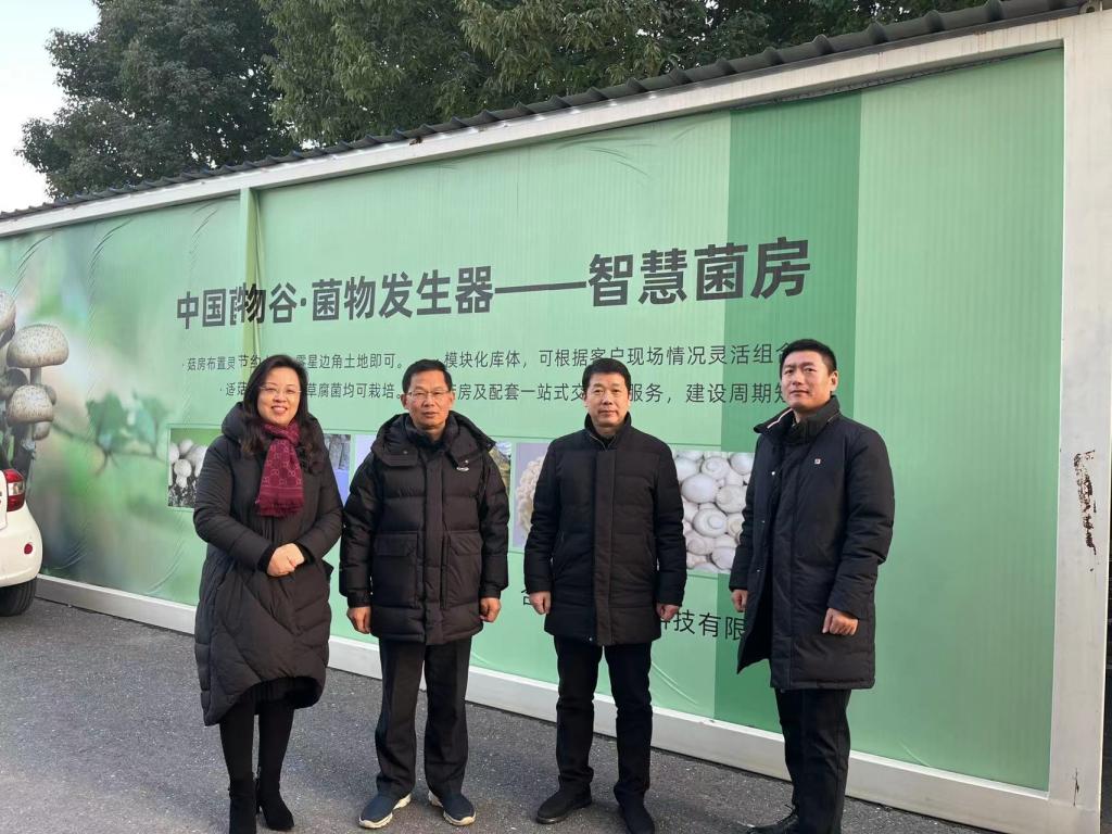 1月16日,农学院何华奇教授与生命与健康科学学院孙玉军教授、玩球官方网站_玩球(中国)股份有限公司,创业大学生——安徽来一克实验科技有限公司总经理郭凯等到长丰县中国菌物谷考察食用菌智慧方舱项目。安徽省食用菌行业协会会长、玉隆农业高科技股份有限公司总经理常莹等陪同参观。