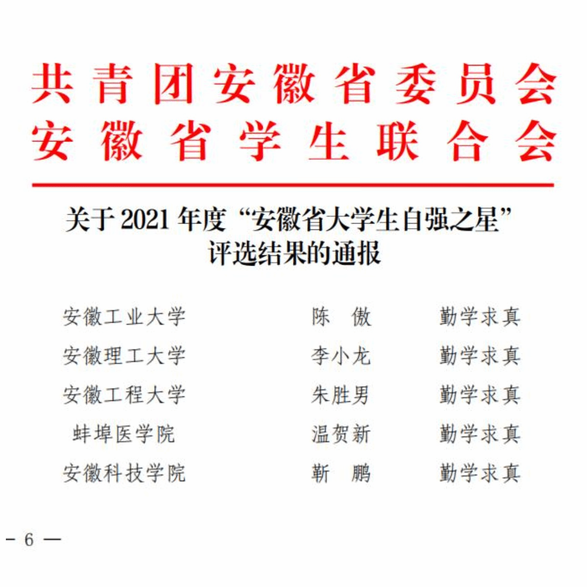 近日,由共青团安徽省委员会、安徽省学生联合会联合开展的2021年度“安徽省大学生自强之星”评选结果公示公布,农学院2020级农艺与种业研究生靳鹏获2021年度“安徽省大学生自强之星”荣誉称号(勤学求真类),并被择优拟推荐为2021年度“中国大学生自强之星”奖学金候选人。