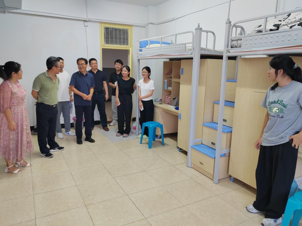 相聚人文,筑梦未来。为及时了解2023级新生报到相关情况,帮助新生尽快适应新环境新生活,9月5日晚,人文学院党委副书记、副院长李晓东,正处级组织员张严政,副院长牛永辉,党委副书记李沙娜及学院2023级新生辅导员焦雪松、徐琦琦,深入宿舍走访慰问2023级新生。
