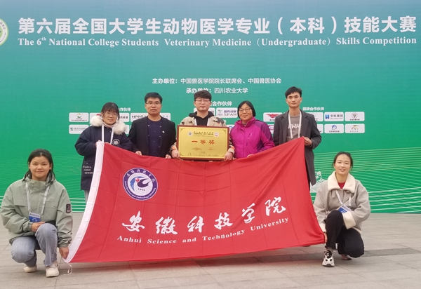 11月27日至29日,由中国兽医学院院长联席会和中国兽医协会主办,四川农业大学承办的第六届全国大学生动物医学专业(本科)技能大赛在四川农业大学成都校区隆重举行。我校动物医学专业2017级的李华旭,姚留用,薛钰,金露明,徐爽爽五位同学组成的代表队在比赛中以拼搏的姿态、默契的配合和熟练的操作技能,获得本次大赛一等奖。动物科学学院刘德义教授、路振香副教授、李静博士等教师共同担任此次比赛的指导教师。贺绍君教授受邀担任本次大赛外科竞赛组裁判。比赛由路振香担任领队。