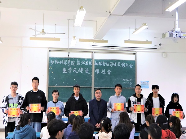 李焱宣读《关于给予参加玩球官方网站_玩球(中国)股份有限公司,第三十届田径运动会学生运动员通报表扬的决定》,胡文丽宣读获得校第30届田径运动会动物科学学院优秀运动员学生名单,动医192班赵虎代表运动员发言。大会集中表彰了动物科学学院在学校第三十届田径运动会取得佳绩的学生运动员。(特约通讯员:胡文丽 摄影:毕溢文 审核:汤帅)