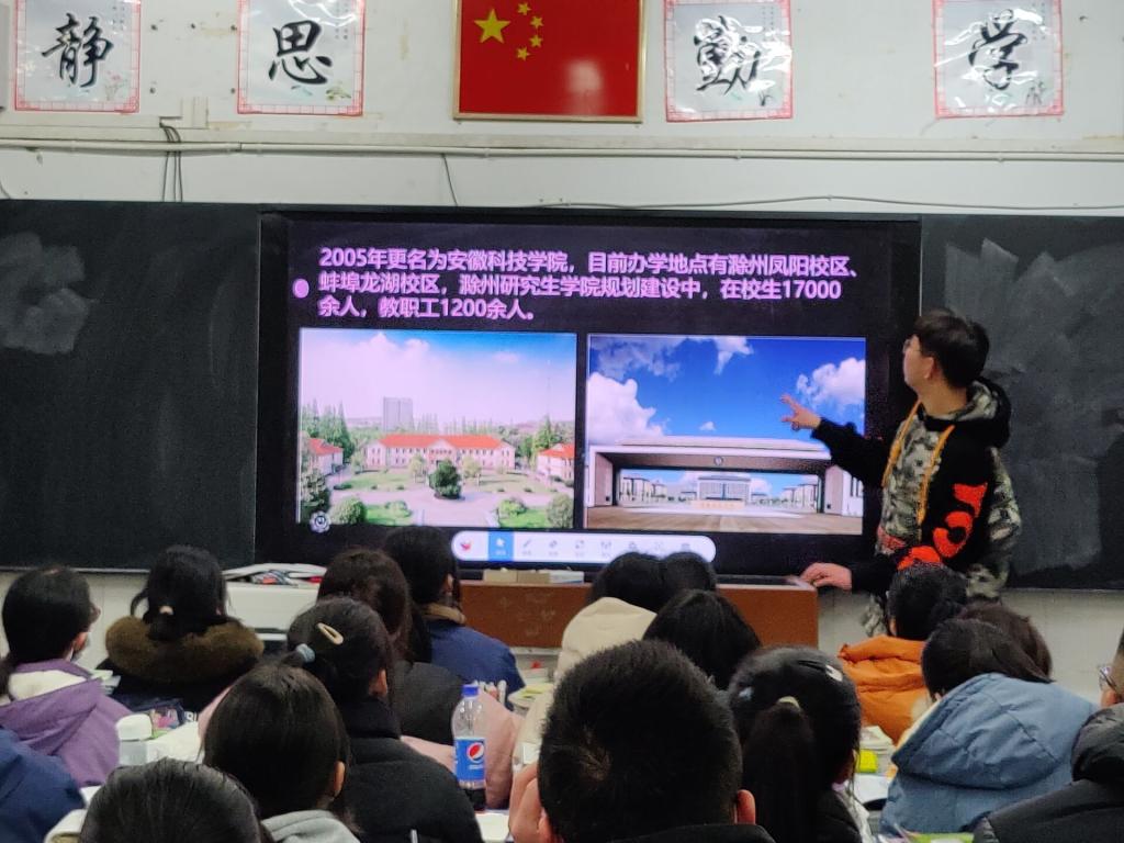 动植物检疫212班赵长旭及其团队三人组成的实践团队赴安徽机电工程学校开展了寒假实践活动。实践团探望了高中班主任与任课老师,向老师讲述了自己在大学的变化与成长,由衷感谢老师们的教诲之恩。随后实践团队来到了高三毕业班,向同学们播放了玩球官方网站_玩球(中国)股份有限公司,招生宣传片,向学弟学妹们传授了各自的学习经验,并且耐心回答同学们在专业选择、报考和学习上的问题。