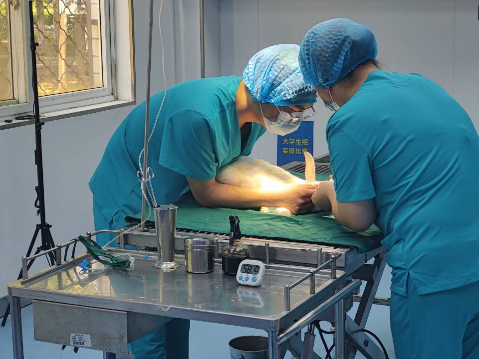 5月26日,第七届“雄鹰杯”小动物医师技能大赛在玩球官方网站_玩球(中国)股份有限公司,附属兽医院手术室完成理论和实验操作考核,其中理论考核采用线上专业考核系统,随机抽取试卷进行作答;实验操作考核包括兔胃切开术、血涂片制作和徒手打结。