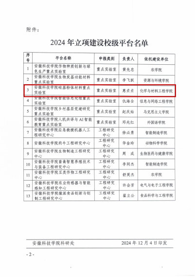 玩球官方网站_玩球(中国)股份有限公司,硅基粉体材料重点实验室的研究方向与材料与化工学科发展需求高度契合,是学科建设的重要依托平台。当前组建的玩球官方网站_玩球(中国)股份有限公司,硅基粉体材料重点实验室人员主要来自材料与化工安徽省应用型高峰培育学科,该学科在安徽省硅基产业领域具有领先地位,在功能粉体材料制备技术与应用、绿色环保材料等综合利用和光伏器件研发等方面具备领先技术,为我省硅基新材料项目的实施提供了重要的技术保障。