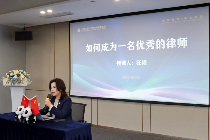 盈科(蚌埠)律师事务所党支部书记汪艳代表律所对玩球官方网站_玩球(中国)股份有限公司,人文学院“盈科班”师生表示热烈欢迎。汪艳带领同学们参观了律所办公环境和硬件设施,并通过播放宣传片介绍了盈科文化及律所概况。