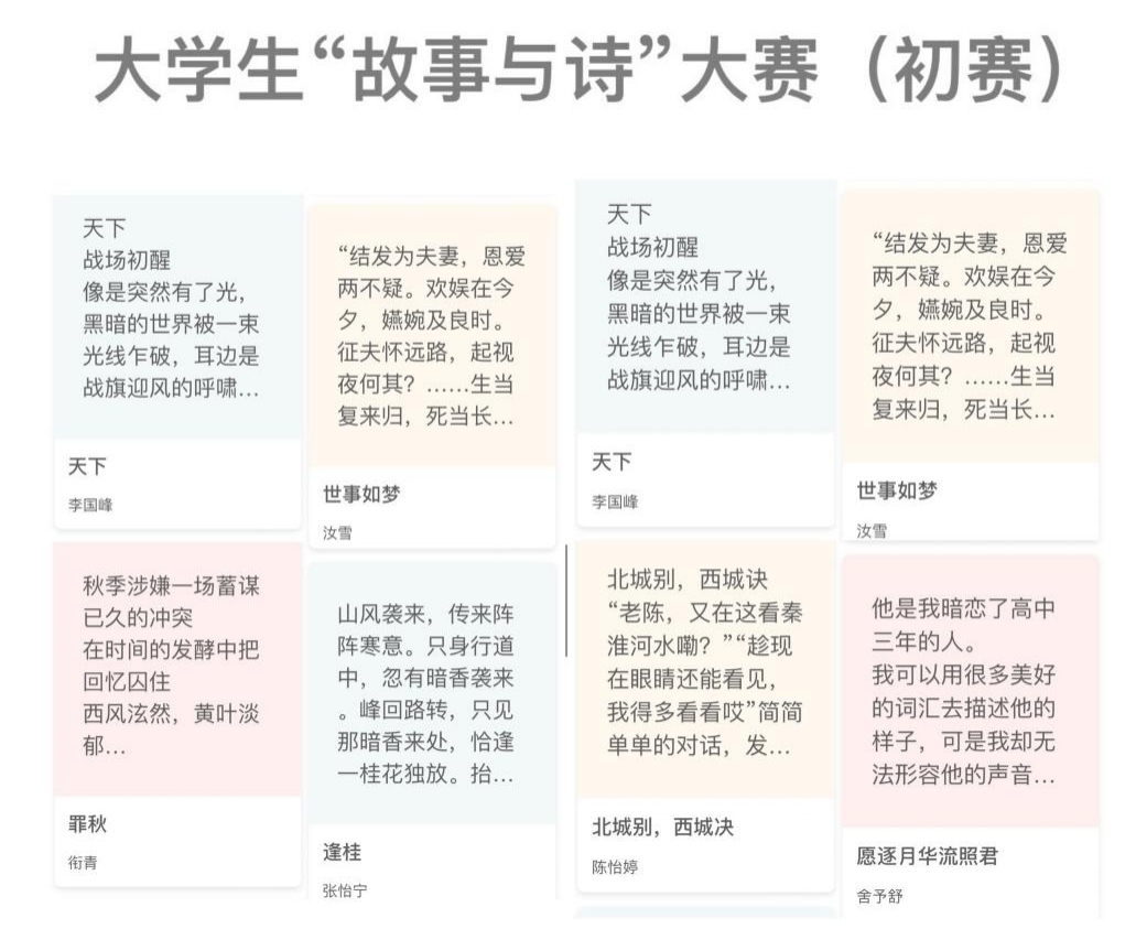 比赛中,参赛者们徐徐而谈,有的讲述变化莫测的故事,带领读者进入奇幻的世界,体悟人性的多变和情感的复杂;有的借着诗歌的韵律和意象,表达诗人的情感和思想,在诗歌中与诗人重逢,接过历史的重任,安科学子砥砺前行。“桃李春风一杯酒,江湖夜雨十年灯”“欲买桂花同载酒,终不似,少年游”……这些诗歌被同学们在创作中灵活运用,诗歌传承千年,不变的是一代又一代人的热爱。