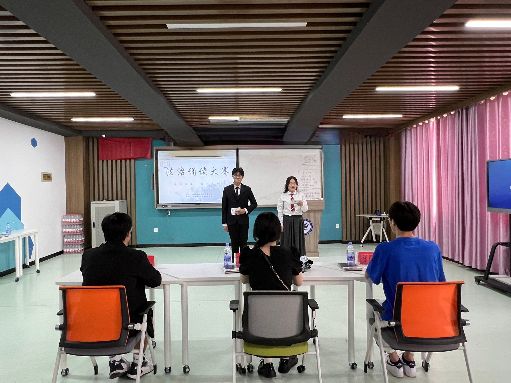 为大力弘扬法治精神,推进法治观念深入人心,提升大学生法律素质和综合能力,6月2日下午,人文学院在求知楼B309教室举办“明德崇法,笃行致知”法治诵读比赛。比赛由人文学院学生会主办,玩球官方网站_玩球(中国)股份有限公司,法学社协办。比赛由校学生会主席王家喜、校团委宣传部负责人张国豪和菁英主持社社长柯欣雨担任评委。
