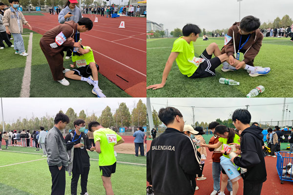 在检录处、跑道旁、缓冲区……总能看到学生联络部成员秦金成的身影,他带领运动员检录、帮助运动员赛前热身、搀扶刚刚结束比赛的运动员离开场地以及向刚结束比赛的运动员递葡萄糖及时补充能量等。他一丝不苟地完成工作,确保运动员顺利完成比赛,在运动员心里,秦金成是他们坚强的后盾,让他们全力以赴为院争光。