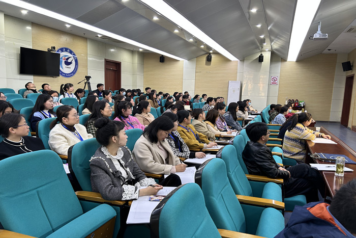 4月8日,由我校外国语学院承办的“明光市教育体育局2023年小学英语骨干教师研修班”开班仪式在我校新图书馆一楼报告厅举行。明光市教育体育局师训办主任李刚、明光市教师进修学校校长陶彦、明光市教师进修学校党支部副书记汪德喜、明光市教育体育局英语教研室教研员徐华乔,外国语学院院长刘萍、副院长洪民等出席开班仪式。开班仪式由外国语学院党委书记蔡为青主持。来自明光市33所小学的62名小学英语骨干教师全部出席开班仪式,并将参加为期4天的集中研修学习。