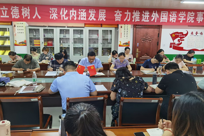 7月6日上午,外国语学院在学院会议室召开全体教职工大会并布置学期末和暑期重点工作。会议由外国语学院院长刘萍主持。